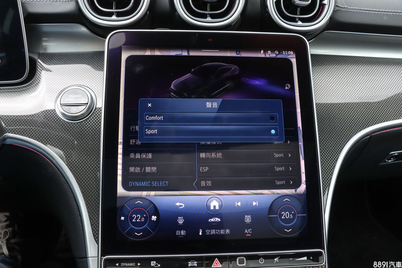CLE Coupe駕駛模式無論Comfort或Sport都會有模擬聲浪,來提升熱血氛圍,不過畢竟不是AMG車型,聲音也不至於太過張狂,算是點到為止。兩者主要差異在於Sport低轉時多了個低沉聲,轉速拉高後兩者差異就不明顯,此外,在Dynamic Select的選單中,還可以針對音效做單獨調整,算是蠻有趣的設定!