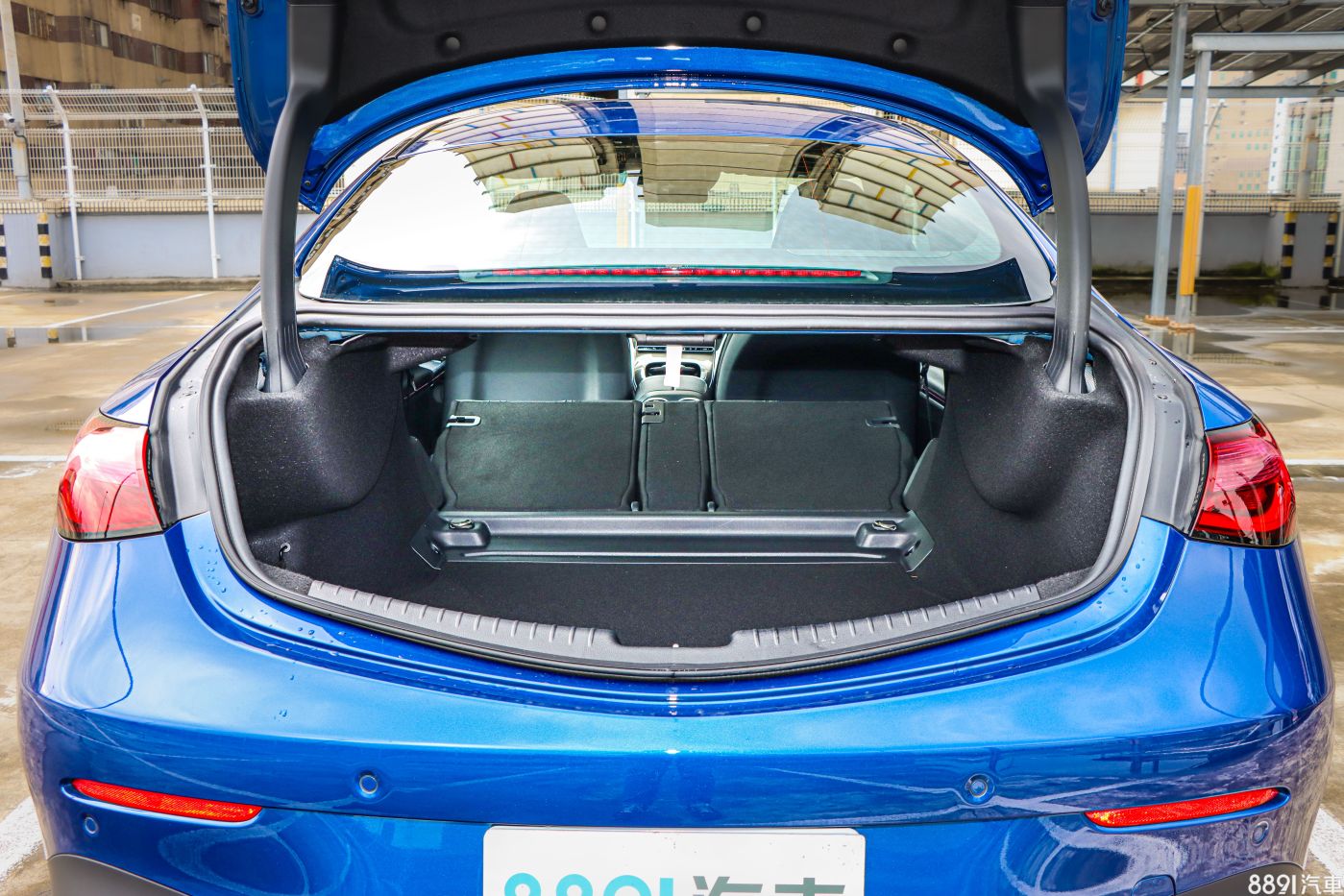 雙門跑車非實用取向,多數買家不會太介意行李箱大小,一開始我也是這樣想,但掀開尾門蓋後,發現並沒有想像中憋屈,原廠容積數據420L,僅比C-Class房車的455L略小一些,而實際使用內部空間其實堪用、且底板十分平整,還可以透過後座傾倒放大置物容量,兼顧日常使用機能。