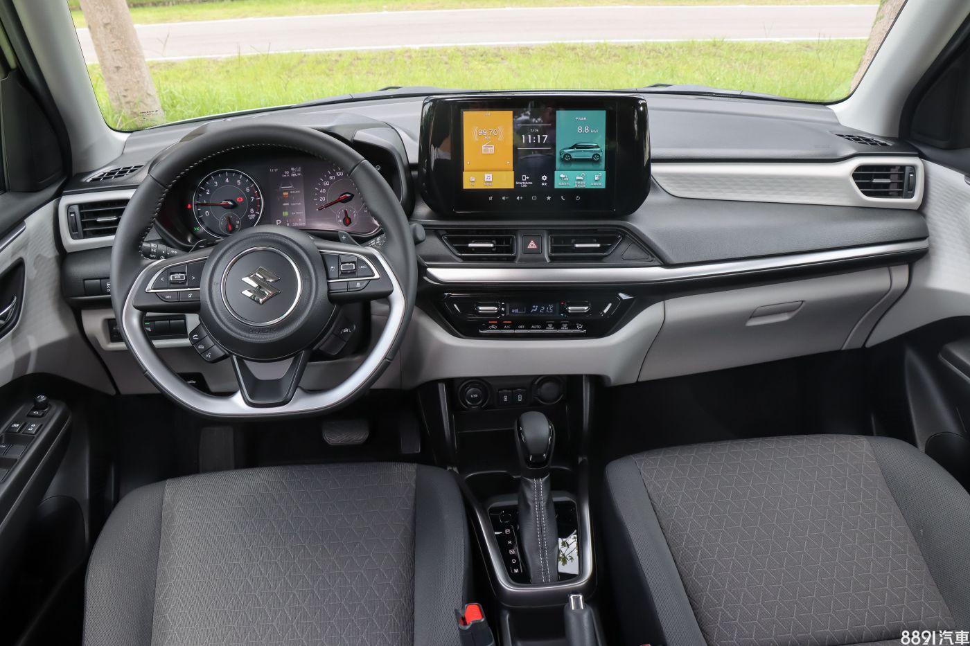 大改款SUZUKI SWIFT顯著提升了內裝質感,採用白黑雙色內裝視覺上頗具層次,組裝也很紮實,沒有小車常見的鬆動手感,且內裝按鍵設計就手,即使第一次上車也能輕易找到所需功能。