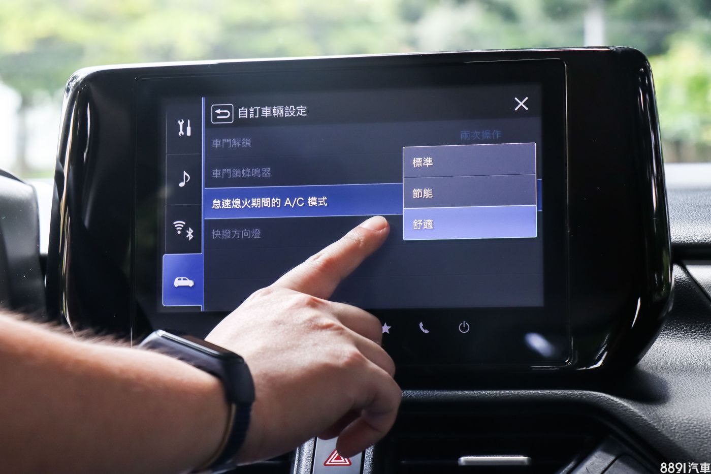 有趣的是由於SUZUKI SWIFT搭載輕油電科技,螢幕內也可選擇怠速熄火時車內冷氣舒適度,透過調整引擎熄火與發動的間隔,維持車內合理的冷氣環境。