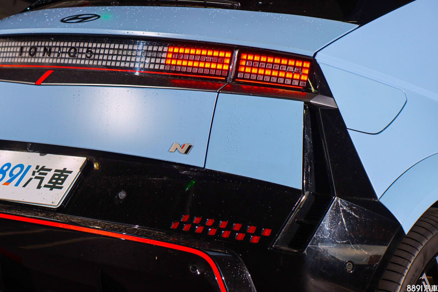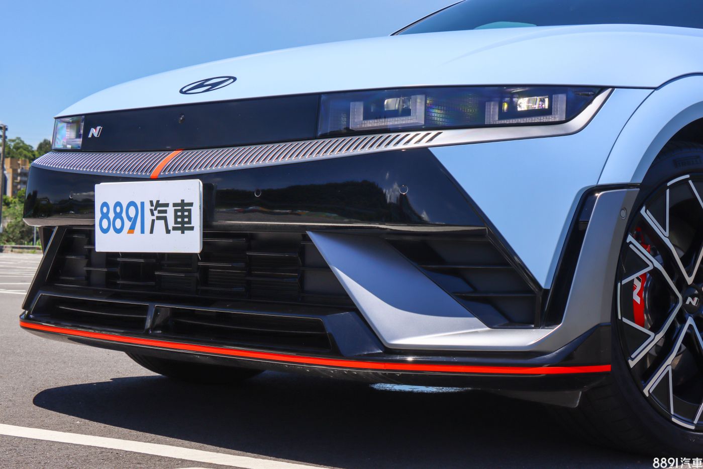 一般的Ioniq 5保桿上方會有整排LED光條,N車型則換成開孔設計,配合下氣壩的主動空力,更有利於電機、高壓線組散熱。