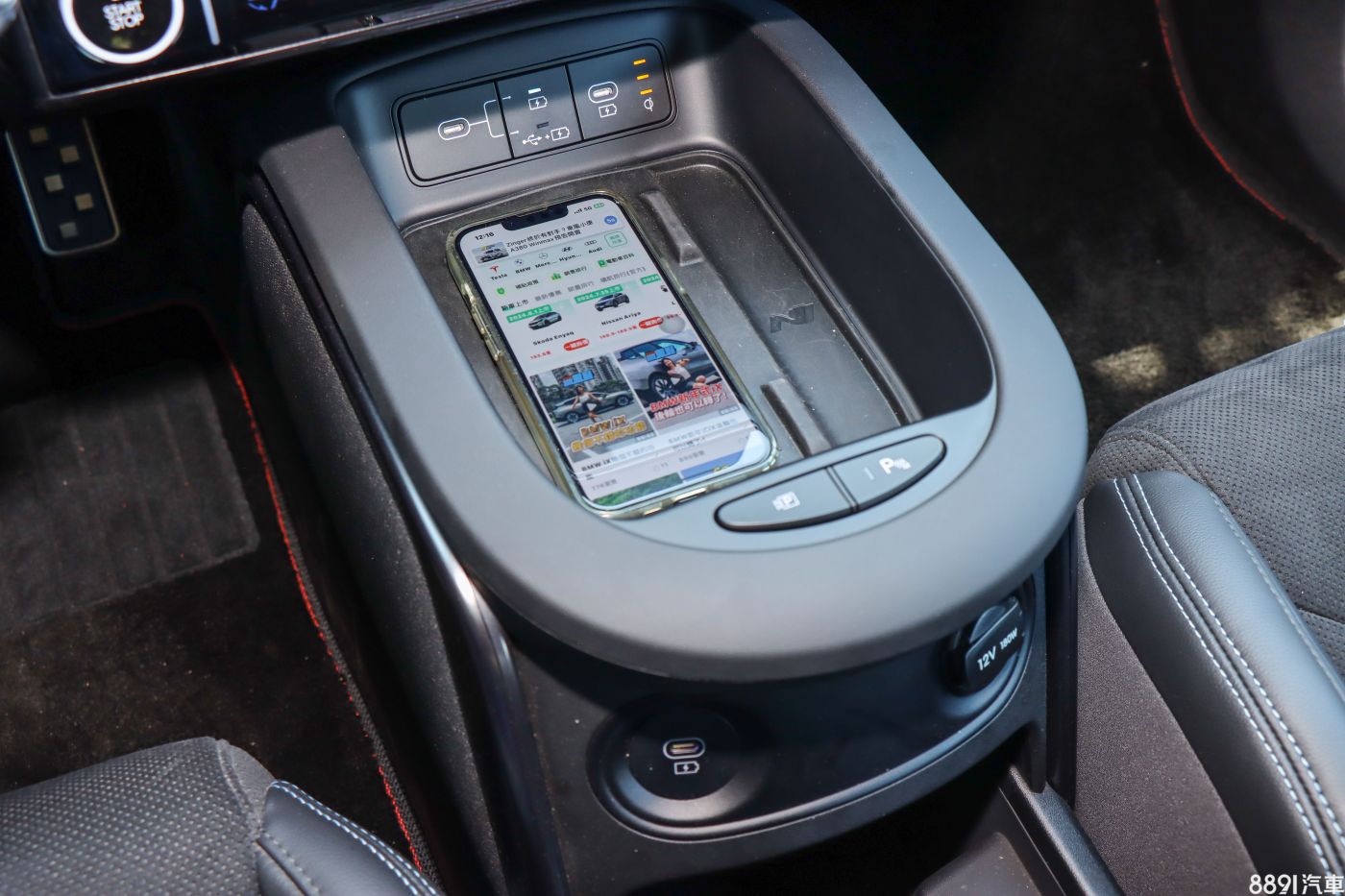 中央鞍座內部有無線充電座,還有3組USB Type-C、12V接口可以使用,座椅之間杯架、置物空間也沒少,在專屬性能化設計下,實用性還是不錯。