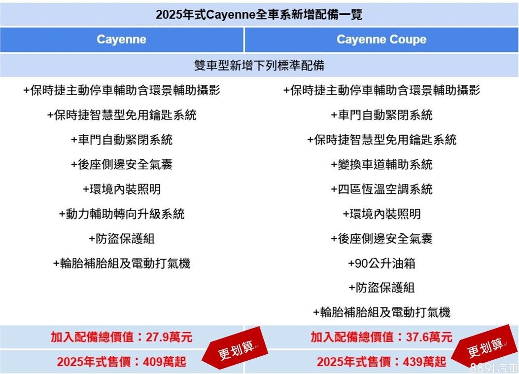 具體2025年式Cayenne到底多了甚麼?這裡表列讓你一次看清楚,除了這次試駕的Cayenne車型外,Cayenne Coupe豪華跑旅也同步升級,新年式車型是比過往更為划算的。
