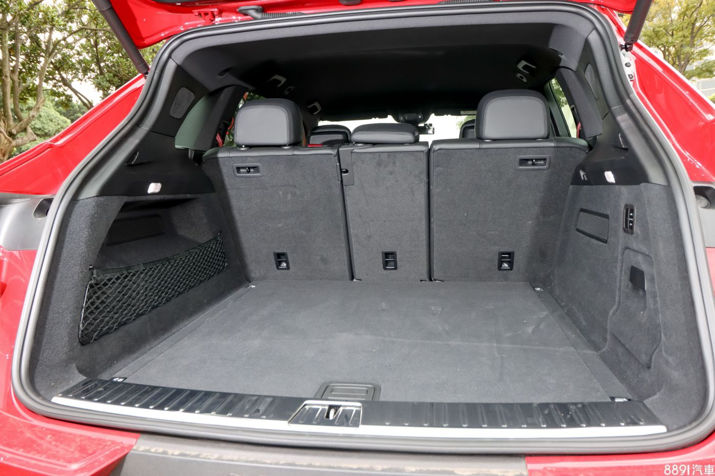 Cayenne基本款行李廂容積為772L,透過4/2/4分離後座椅背傾倒,可以進一步擴大至1708L,置物空間當然比Coupe版本更為優秀,適合置物需求高的家庭買家。試駕車因有選配PASM主動式氣壓懸吊系統,在後艙右邊會多出一組電動升降按鍵,可直接調整後軸高度,搬重物會省力一些。
