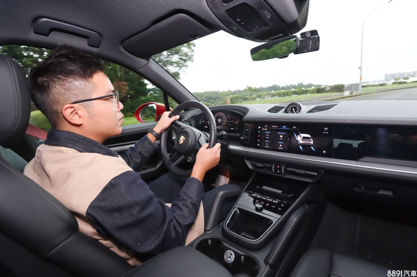 12.6吋曲面螢幕儀錶板造型與Taycan相同,擁有極佳顯示畫質,動畫呈現也很流暢,也提供多種顯示模式,可以用滿版地圖導航、顯示駕駛輔助狀態,但編輯最喜歡的還是叫出5環錶模式,致敬經典的保時捷風格,看起來超有感覺。