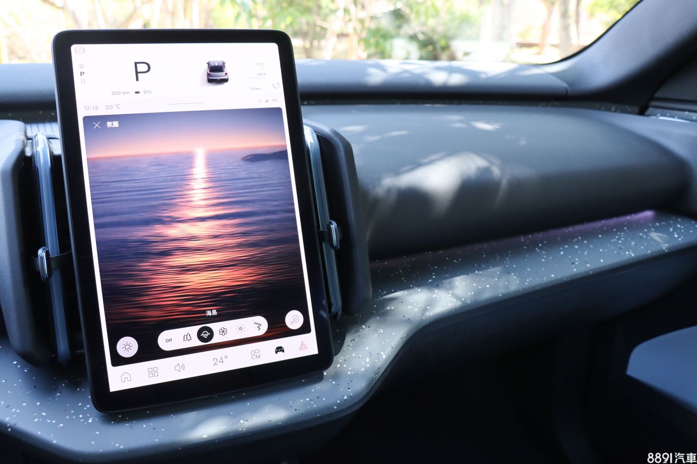 車內質感好,氣氛燈不可少!EX30提供「北極光」、「仲夏」、「森林浴」、「北歐暮色」、「海島」」等五種取材自北歐的車室氛圍主題,會有相對應顏色的氣氛燈,還可獨立開啟配樂,營造出類似「白噪音」的紓壓、放鬆環境,試車一路上,個人最愛選用的是「海島」,紛沓而至的海浪聲,真的很療癒!