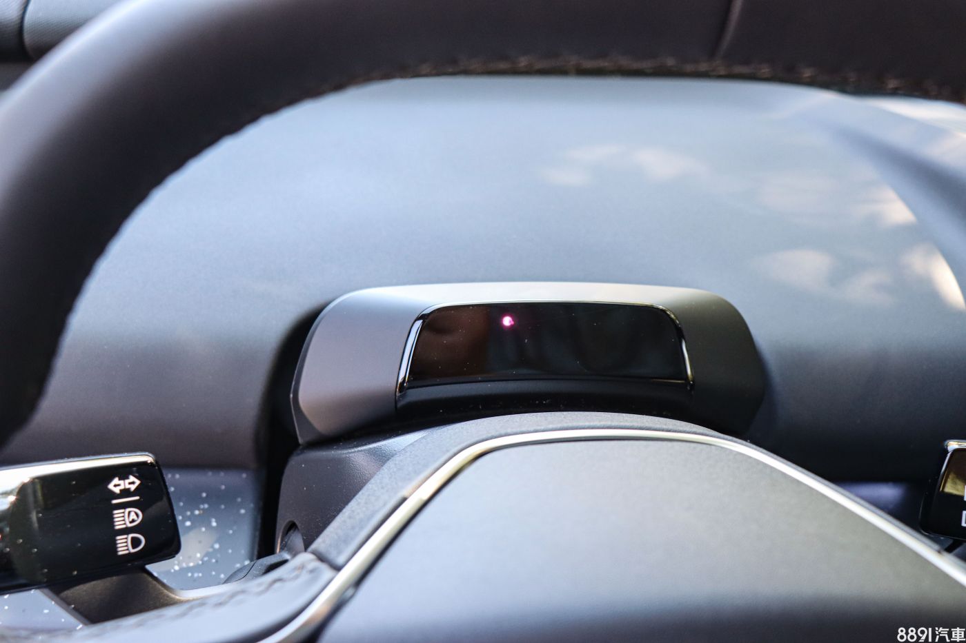 三輻式皮質方向盤造型簡約、盤徑適中,左側按鍵可一鍵啟動Level 2跟車及駕駛資訊介面調整,右側按鍵則負責操控多媒體娛樂。
