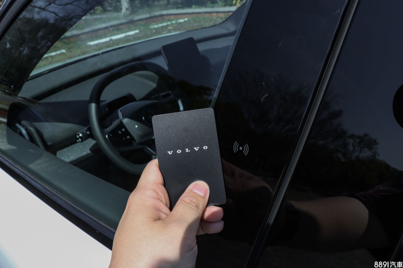 EX30也是Volvo首款導入NFC晶片鑰匙、手機數位鑰匙的車款,不過後者因為App還在做最後確認,本次試車就沒有體驗,但原廠表示屆時交車時就會開通。至於NFC晶片鑰匙操作方式就很簡單,只要將卡片靠近車輛B柱的感應點,即可自動解鎖。