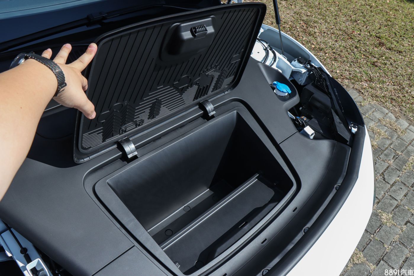 中船上方設有手機無線充電板,不過僅左側可以感應充電,後方有開放式置物槽,無論長度、高度、深度都很理想,適合放罐裝水、面紙盒、隨身包等較大物品,活動蓋板的設計,對於收納也很加分。