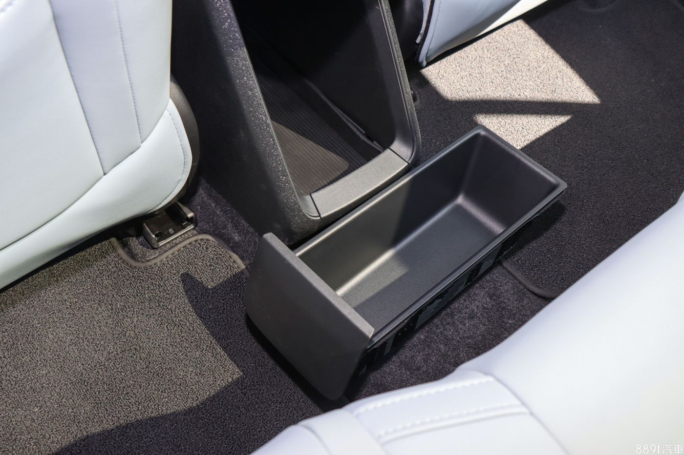 除了前座外,後座置物空間也別有洞天!縱使沒有出風口,但中央扶手下方正好可以規劃大型儲物槽,還可將內部的抽屜完全拉出,作為活動式收納盒,進一步擴大使用機能,很是方便!