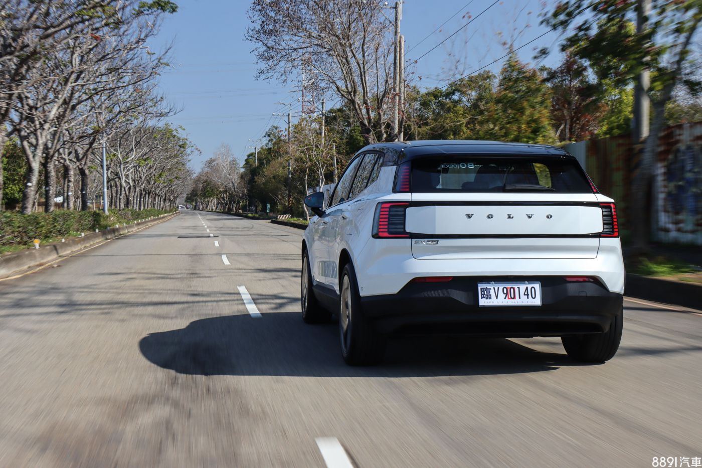 底盤採舒適化設定,加上19吋大尺碼鋁圈,原以為EX30經過不平路面或坑洞時,會有明顯衝擊感,不過實際行駛濾震表現佳,能有效撫平多餘震動,幾乎沒有不舒服的彈跳產生,且過彎時懸吊蠻有韌性,雖側頃難免,但能明顯感受懸吊壓縮到一個程度就Hold住車身,幫助車輛順暢過彎,動態表現沉穩受控。