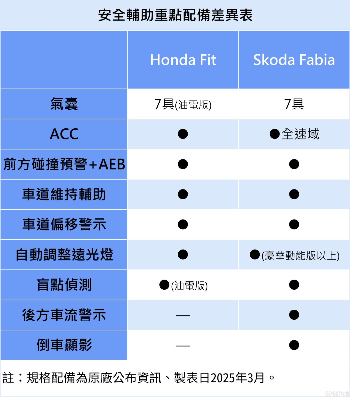 Fabia顯然在主動安全更加豐富完善,雖說大改款Fit補足了前代最缺乏的主動安全科技,將Honda Sensing列為全車系標配,但ACC非全速域,算是遺珠之憾,不過這又回到「羊毛出在羊身上」的問題,別忘了雙方價格上還是有差異的。