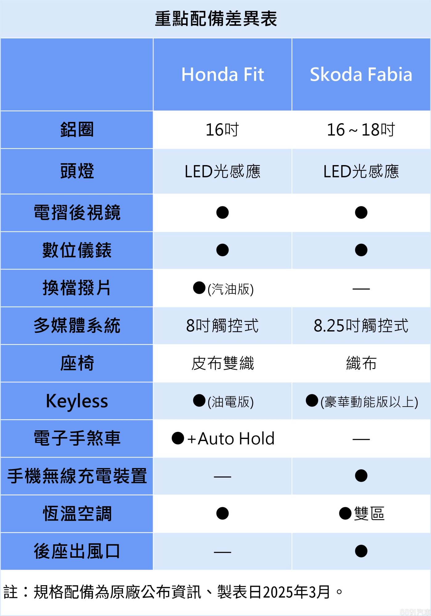 Fit雙動力各一車型,75.9萬入手價已數「高標」,目前為主力販售的頂規油電版本,售價至82.9萬,再加一點就能買進口身分的Fabia,而Fabia頂規更是破百萬,兩車的配置能否符合其身價?對於小車來說,這部分更容易被放大檢視。月貸千元開走?輸入車款,3秒獲取分期方案,立即試算>