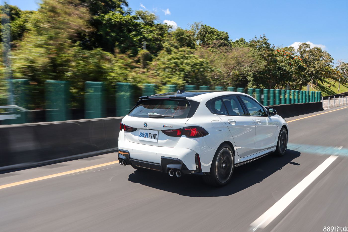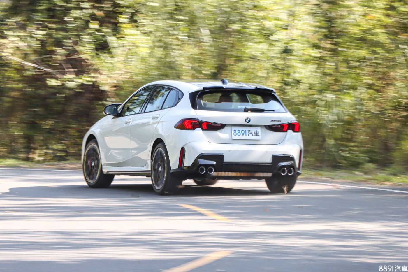 至於車尾動態,基本上就是一路跟著車頭,穩定性與積極度之間的分寸拿捏剛剛好,不過可感受到避震器回彈感較直接,猜想會影響後座乘坐性。M135輪胎規格是235/40R19,19吋的氣勢驚人,輪胎則是固特異F1,等級沒話說,但也許是235mm還不夠寬大,很容易將輪胎逼至極限,底盤明明還很穩,有點可惜。