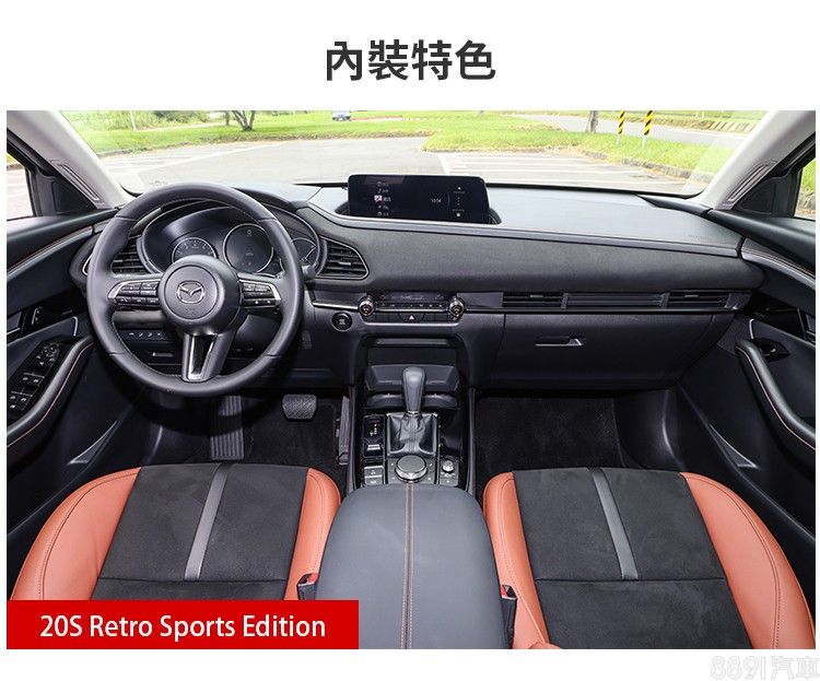 Retro Sports Edition不只是外觀個性強烈,內裝更是整台CX-30的質感高峰,標配雙色麂皮+皮質運動化座椅,不但包覆性佳,觸感與視覺層次都優於傳統真皮。儀錶板、中控台與門飾也加入麂皮飾板與雙縫線點綴,搭配簡約中控佈局,整體座艙氛圍相當接近Mazda高階車型。