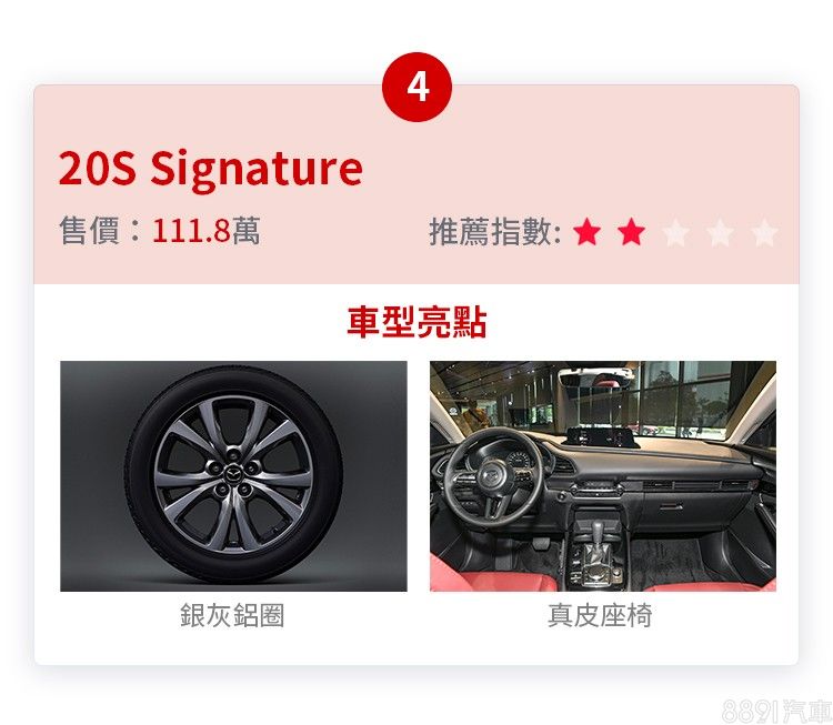 Signature雖然是最貴的版本,但實質僅升級真皮座椅與銀色鋁圈,整體風格與功能幾無突破,除非你真的熱愛真皮觸感,否則不太推薦往上攻。