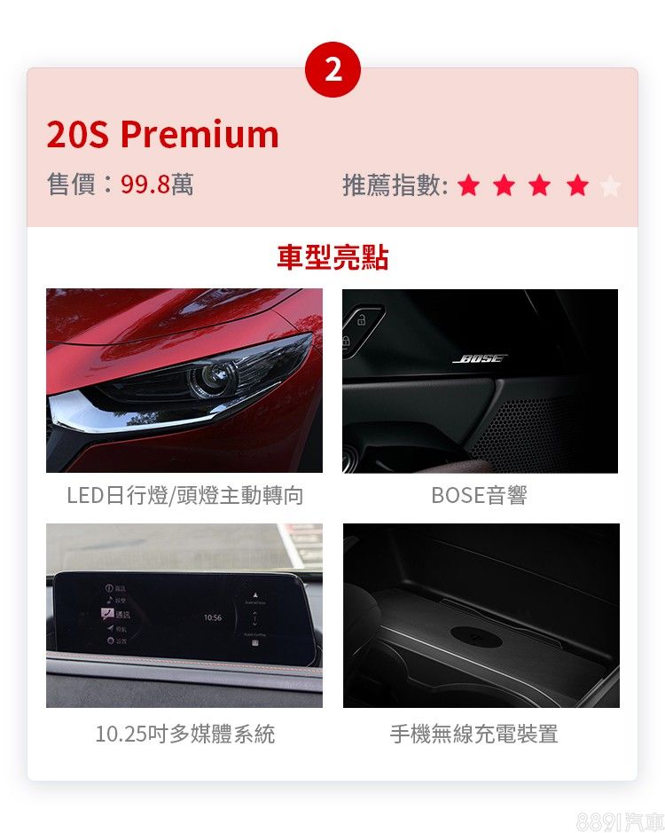 多花10萬有BOSE音響、10.25吋多媒體與無線充電,對於在意中控操作與聲音表現的使用者,是很有感的升級。