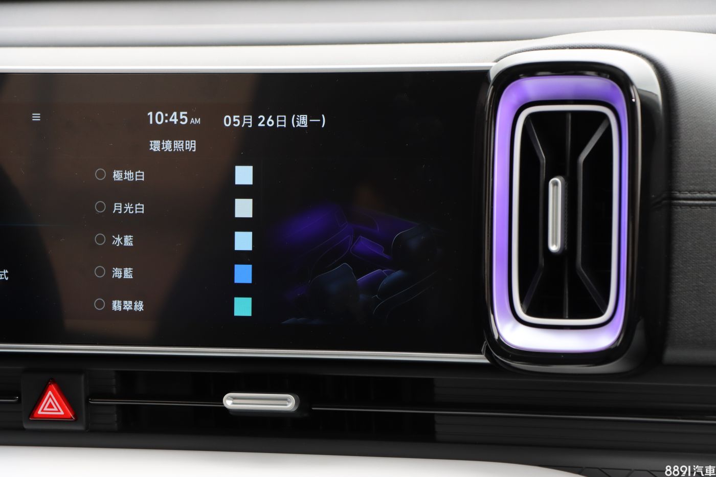 氣氛燈有64種顏色任君挑選,也可以綁定駕駛模式換色,在切換模式時氣氛燈還會閃爍,蠻有儀式感的。如果怕晚上氣氛燈讓你眼花撩亂,可以開啟低光源自動關閉功能,配合螢幕低藍光模式,晚上開車舒服,白天亦能享受燈光帶來的繽紛感。