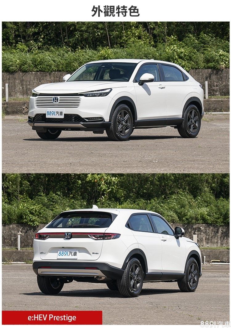 小改HR-V外觀變化「微乎其微」,車頭主要是將水箱護罩下緣拉寬,呈現出上窄下寬的梯形,連結頭燈的飾條也加粗,要辨別油電版,可從車身同色水箱護罩、藍色H廠徽、e:HEV銘牌等地方著手,若是Prestige車型還會在前後保桿添加銀色飾條點綴。