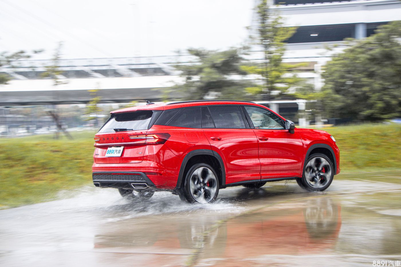 相較動力與懸吊的分明性格,Kodiaq RS在四驅調校上則將「穩定」視為第一要務,試駕這幾天恰巧碰上中部大雨,路上積水遍佈、山路上還有大量落葉,但不論前輪怎麼轉、後輪就是能穩穩跟上,電控與四驅間的調校給予駕駛人充分信心。只不過七人座SUV的包袱就在那,開著Kodiaq RS不會讓人想征戰整條山路,卻會想在旅程中切到適合的駕駛模式,看車上人數來決定這趟旅程該怎麼移動。