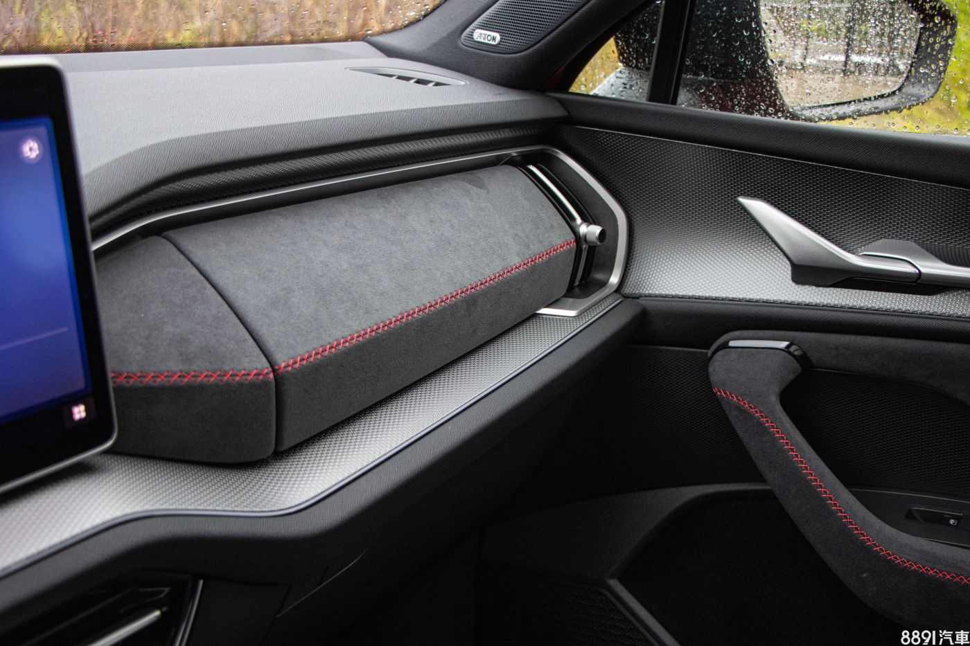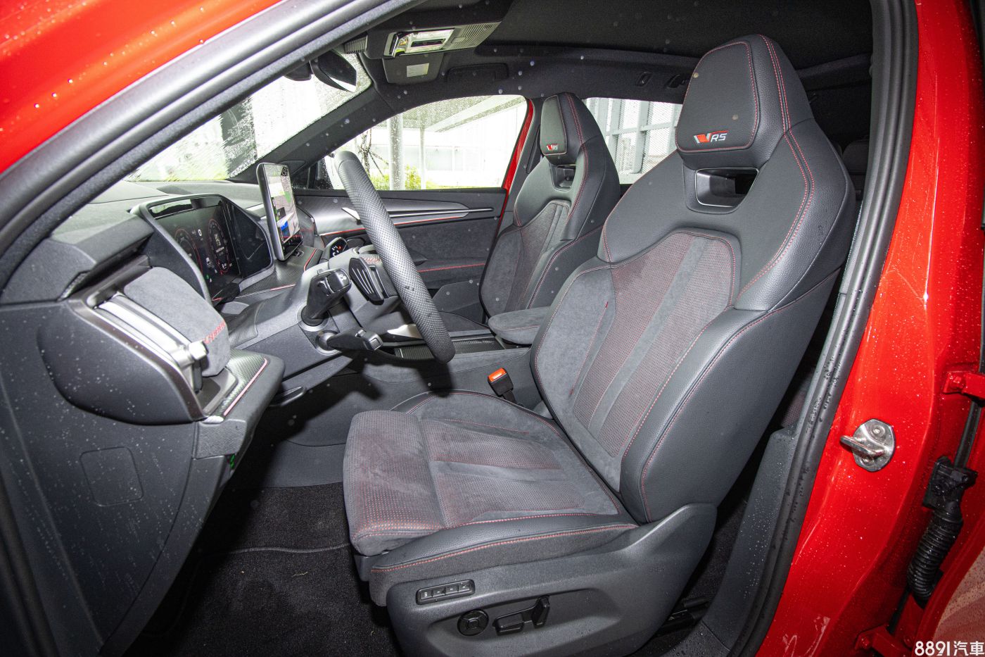 因應RS性能身分,內裝材質大量改用類麂皮搭配紅色縫線,飾板也換上銀色格紋飾板,性能氛圍滿點。