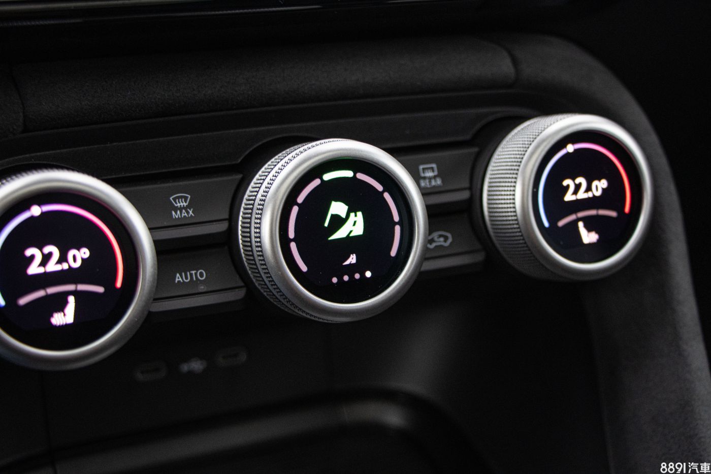 冷氣出風口下方的Smart Dials是少數的實體操作介面,中央旋鈕整合音量、冷氣風量、冷氣出風口位置還有駕駛模式,不過功能多也不一定便利,常常按過頭找不到自己需要的功能,建議從螢幕中取消勾選,保留音量與駕駛模式即可,操作上會順手很多。