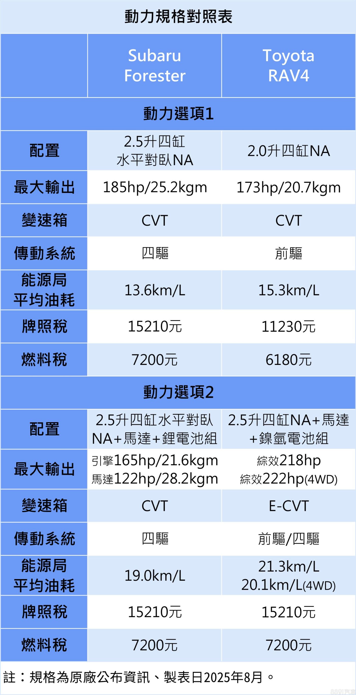 Forester招牌四驅當家、RAV4油耗表現亮眼