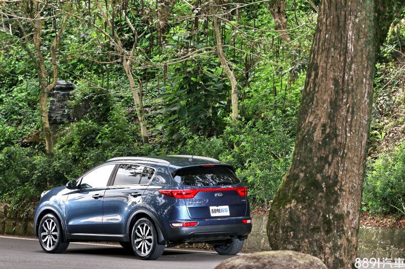 車身腰線上揚且更強化曲線感,車頂坡度也被設計的比前代更陡一些,明顯的輪拱與全車多鈑金折線讓新款Sportage更具肌肉感。尾門中央以紅色飾條連接兩側尾燈、上方的鴨尾設計、加上後保桿大面積防刮材質與雙出排氣管,充滿立體且動感的視覺感受,讓全新Sportage擁有十足侵略性的跑旅外在。