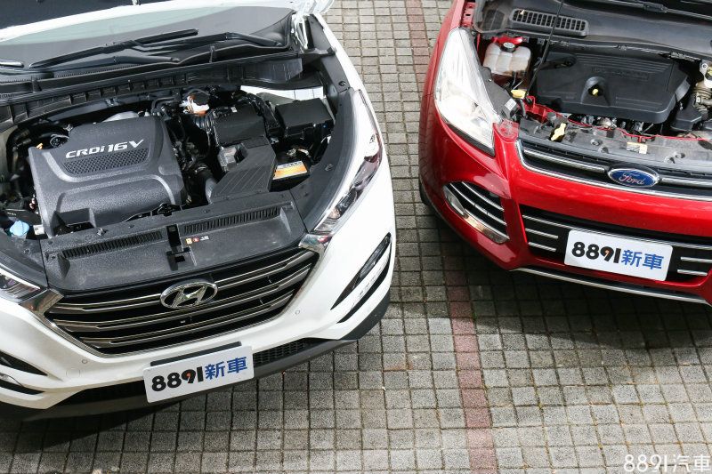 Kuga搭載同樣為2.0升L4架構的柴油渦輪動力單元,最大動力為180hp/3500rpm、40.8kgm/2000~2500rpm,數據上與Tucson在伯仲之間,但採用變速系統採用六速雙離合器自手排,能源局油耗數據同為1級效率等級,但平均油耗可達到17.3km/L的水準。