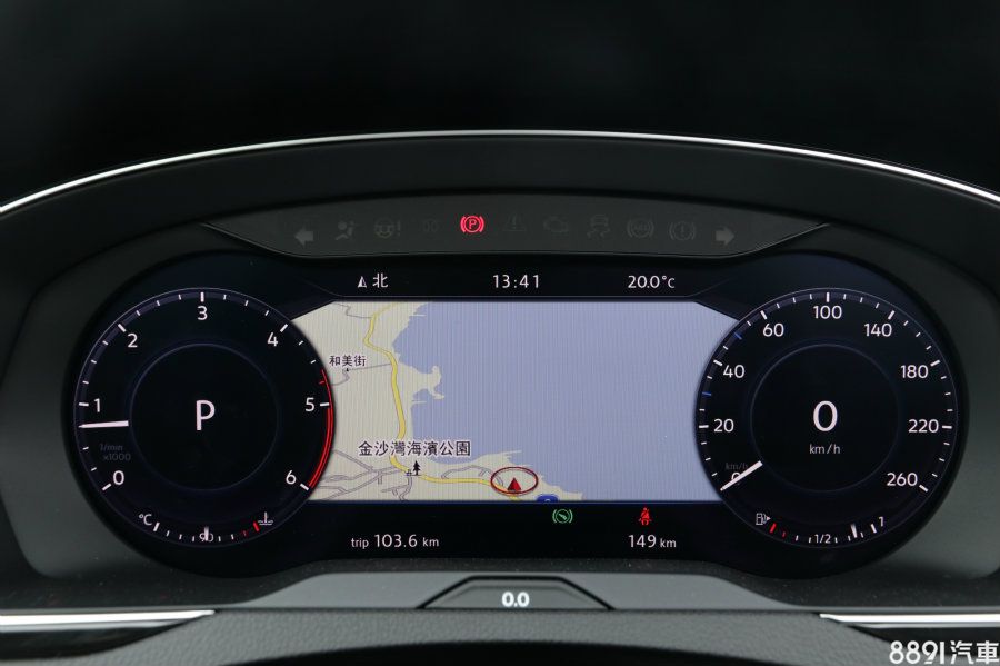12.3吋的全邏輯數位化儀錶板是新年式新增配備重點,顯示方式與Tiguan高階車型完全一樣,顯示方式基本上就是兩旁為時速與轉速,中央可選擇導航地圖、油耗或音響資訊等方式,另外兩個環形儀錶中央的顯示內容也可以調整,檔位與數位車速的內容是我們最喜愛的設定。