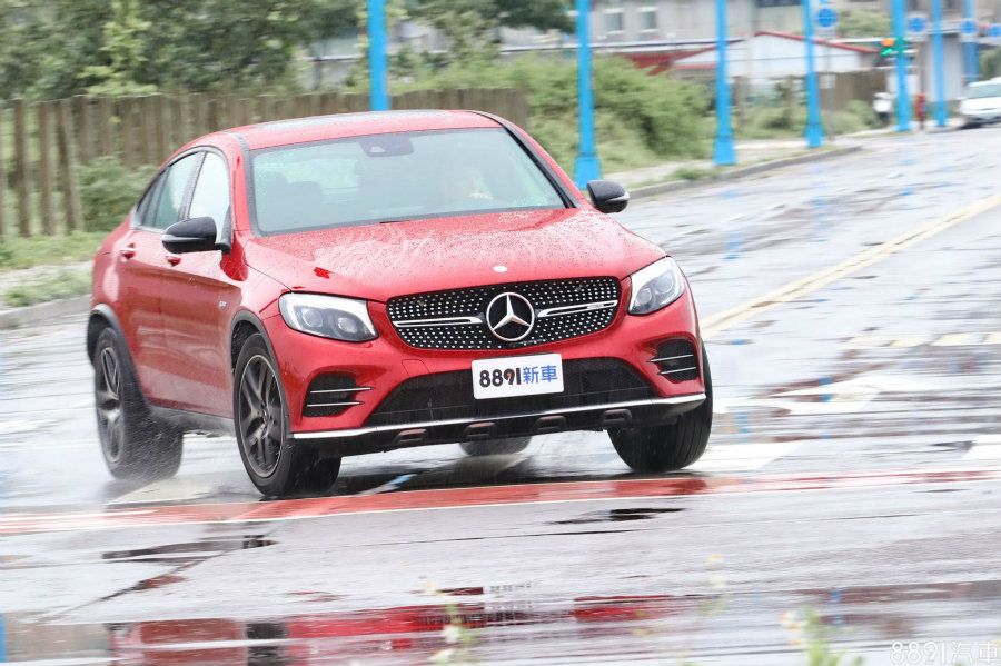 試車當天都是陣陣雨勢,雖然多少影響拍攝工作,但對於GLC43 Coupe來說,是個展現底盤火侯的機會,因此我們並不感到失望。雖然GLC43 Coupe的車身重心仍比一般房車來得高,但在過彎時,除了側傾的狀況並沒有想像中明顯,轉向角度也好掌握,靈活性比大一號的GLE Coupe好上許多,加上聰明的四驅系統,即使是雨天,只要加減速動作拿捏地恰當,車輛都能按照心中的路線前進,是部安定有樂趣的車。