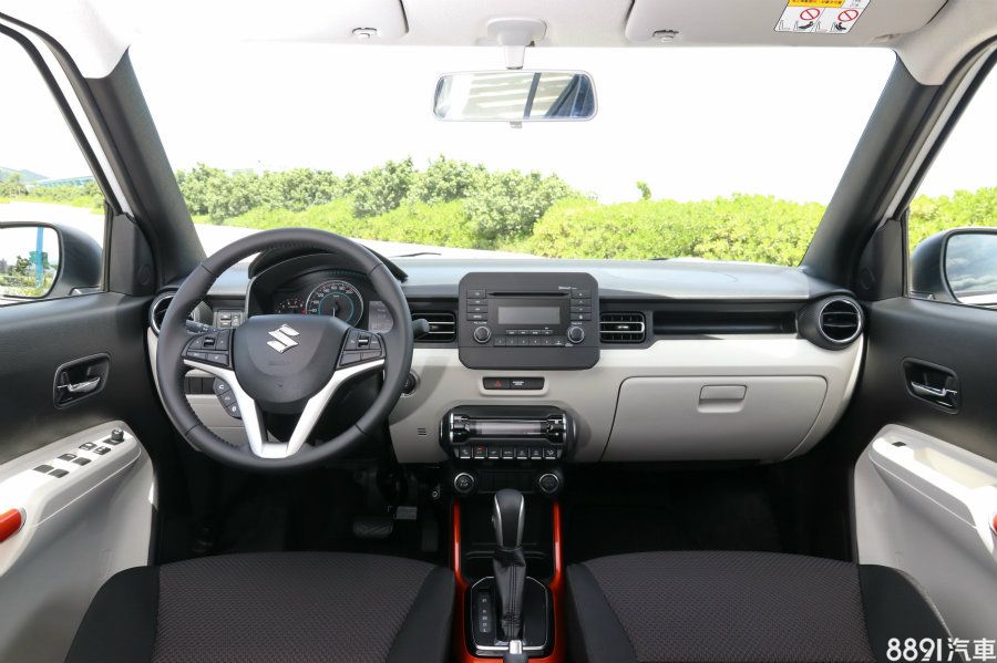 中控台採用不規則、有層次的設計,除了黑/白的基本色調,在排檔座周圍以及車門把手均為鮮橘色的亮面材質(紅/黑、灰與藍色車款則是金屬色),符合活潑的年輕化風格,此外,以60萬出頭的都會小車來說,質感相當不錯,沒有太多廉價的塑料感。配備部份,IGNIS在同級之中稱得上齊全,重點項目包含Keyless、定速、多功能方向盤以及恆溫空調,都是日常使用率高的功能,至於安全性方面,標配6具氣囊、ESP動態穩定、斜坡起步輔助系統以及ISOFIX兒童安全座椅固定裝置,相信能滿足重視安全的買家。