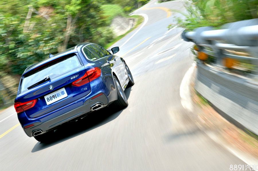 只是除了轉向回饋上的設定外,另一個在BMW 530i Touring M Sport身上所做出的明顯改變便是動力輸出曲線上的調整,過去只要是0~100km/h加速落在6秒台的BMW車種上,當你全力鼓動油門疾馳而出時,總是能夠感受到強烈的推送力道,可是現在BMW 530i Touring M Sport卻是以線性平順為主要依歸,搭配優異的NVH,真的跟熱血搭不上邊,讓人有點想念過去較不線性但推力感足夠的設定。