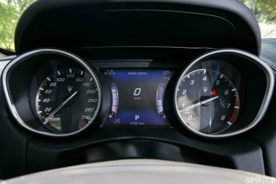雙圓式儀錶簡單好辨識,其最高時速刻劃至310km/h,出現在Levante這部SUV上,可見原廠給予車輛的性能成份相當高。