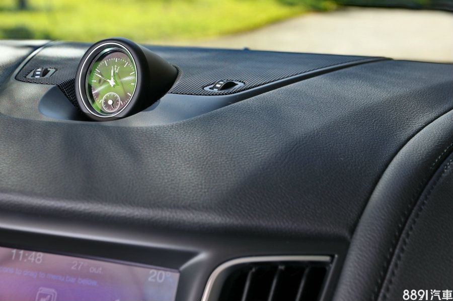 只要是Maserati車款,就少不了中控台上的橢圓形時鐘,有助提升座艙氣質,而後方看似音響喇叭的網罩,其實是冷氣出風口,相信多少能幫助冷房效果。