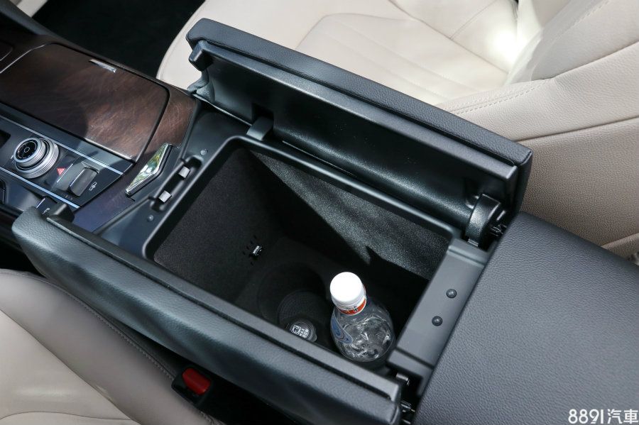 中央扶手內部空間可說是意外的深,且設有額外的置杯座與保冷功能,在夏天是相當實用的功能。