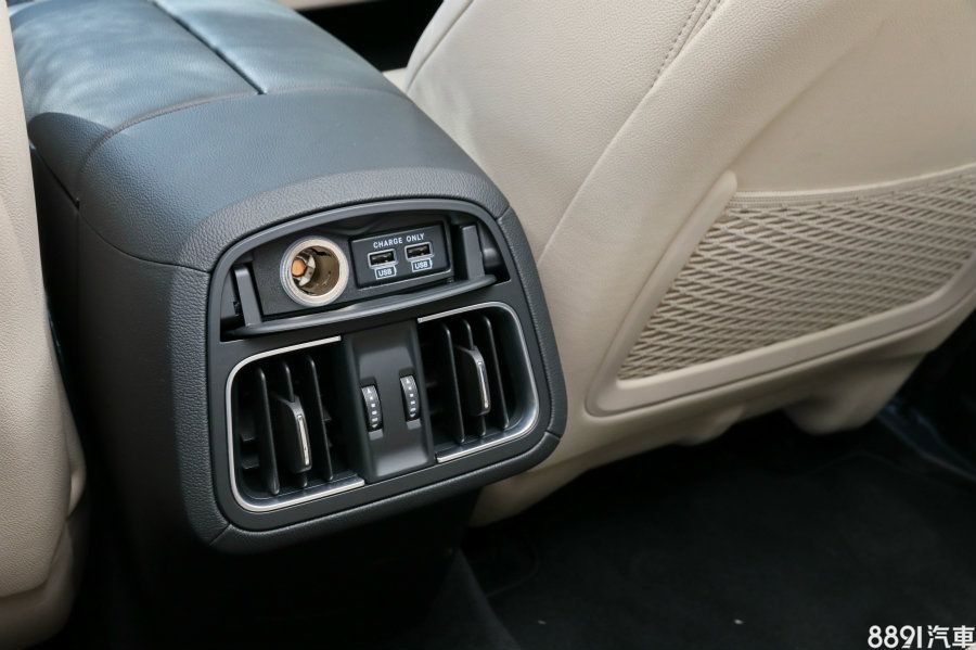 在後座冷氣出風口上方設有兩組充電專用的USB插槽與12V電源插座,有外蓋可啟閉維持不使用時的視覺整體性。