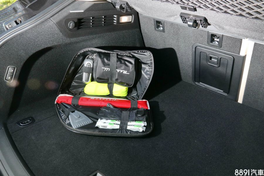 行李廂左側備有緊急狀況使用的工具包,包含手電筒、螢光棒、刮板、急救包以及一組質感良好的手套,整組精緻的設計,讓人愛不釋手,高端品牌的細膩與精緻就在這些魔鬼細節裡!
