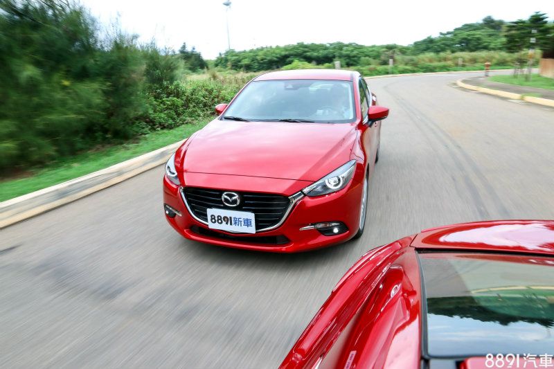 小改前後Mazda 3在底盤方面帶來的感受,若撇除GVC系統對於操控面的影響,其實兩車同樣提供輕快且富有樂趣的敏捷身手,但最明顯的莫過於車內隔音表現,試駕當天首先接觸的是先行款式,在一般市區的行車速率或許還能接受,但當到了高速道路上,從底盤與輪胎滾動時的噪音實在難以忽略,有損原廠欲建立的高級質感,但換到了新Mazda 3上,雖然仍無法與標榜舒適性的車款相提並論,但在相同路況、時速的條件下比對,就能體會出之間的差異,若要比喻,就好比原本80km/h時速下的行進噪音,現在到100km/h才會出現相同的程度。