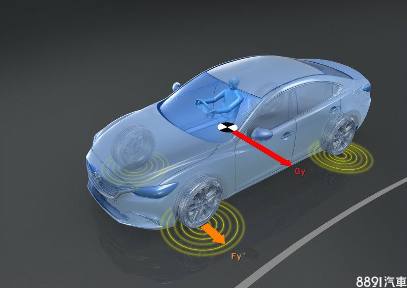 GVC全名為G-Vectoring Control,是這次Mazda 3小改款的最大重點,隨後也加入新年式Mazda 6,相信接下來成為Mazda全車系標配的日期不遠矣!在瞭解這套系統作動原理前,我們先解釋一下車輛在轉向時所碰到的G值變化。所謂的G值,白話一點描述便是「離心力」,車輛在轉向時,乘客會感受到「外拋」,這便是因為離心力之故,而G值除了左右兩向,也包括前後,意即加減速。雖然G值是四個方向性,但車輛在過彎過程中,G值是持續變化的,想像一下過彎過程,可簡單區分「減速→轉向→加速」三個過程,因此G值持續的從往前(減速)、往側邊(轉向)、往後(加速),這樣的過程,容易讓乘客因身體搖晃,造成乘坐不適的感受,然而,G值、離心力是物理特性,無法抵抗消失,但車輛可以藉由降低車身晃動,讓乘客獲得更好的乘坐品質,這也是GVC系統最大用意。