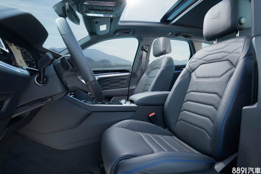 座椅頭枕上的R徽飾少不了,另黑色Puglia皮革包覆亦為Touareg R專屬,並加入Sepang Blue飾條,豐富的安全輔助項目則包含Trailer Assist拖車倒車輔助、整合主動ACC、Lane Assist車道維持及偏移警示、Front Assist車前碰撞預警、停車輔助、前方行人監控等的Travel Assist駕駛輔助系統(最高時速可支援至Touareg R的極速250km/h)。