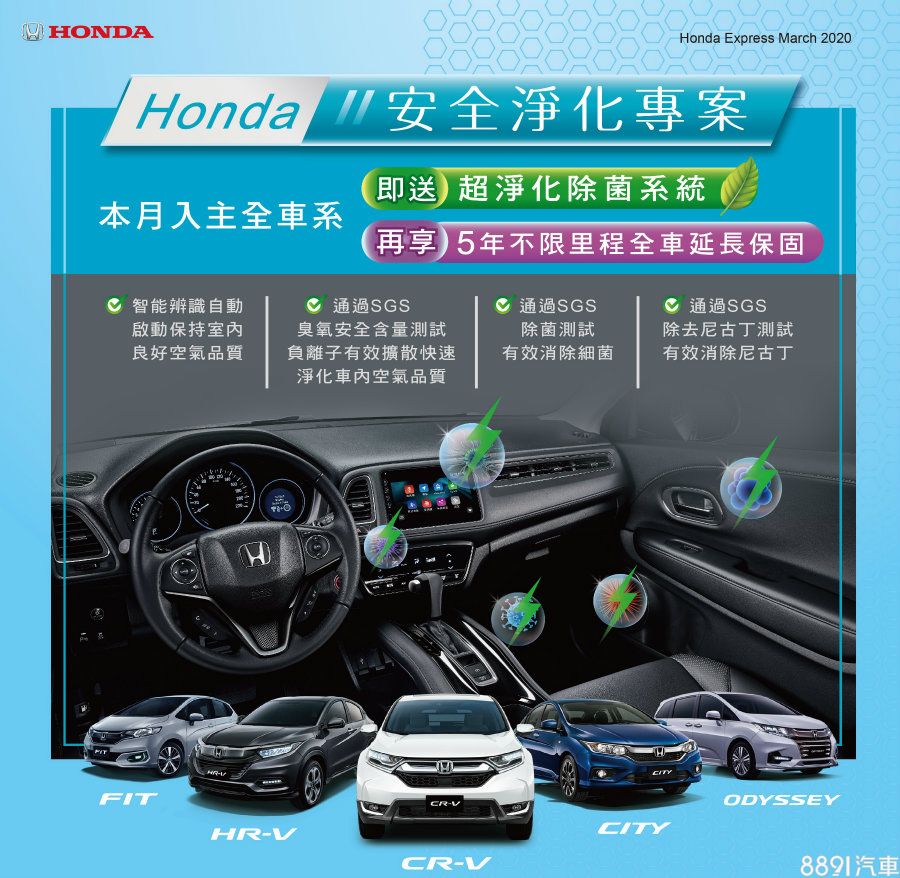 近期新型冠狀病毒肆虐全球,Honda Taiwan限時推出「安全淨化專案活動」。即日起至3月底止入主Honda全車系,即贈送「超淨化除菌系統」優值好禮,此外,3月底前入主Honda全車系,更加碼贈送「5年不限里程延長保固」;入主CR-V可享「70萬高額零利率」、HR-V可享「智能影音安全特仕版」限量優惠。