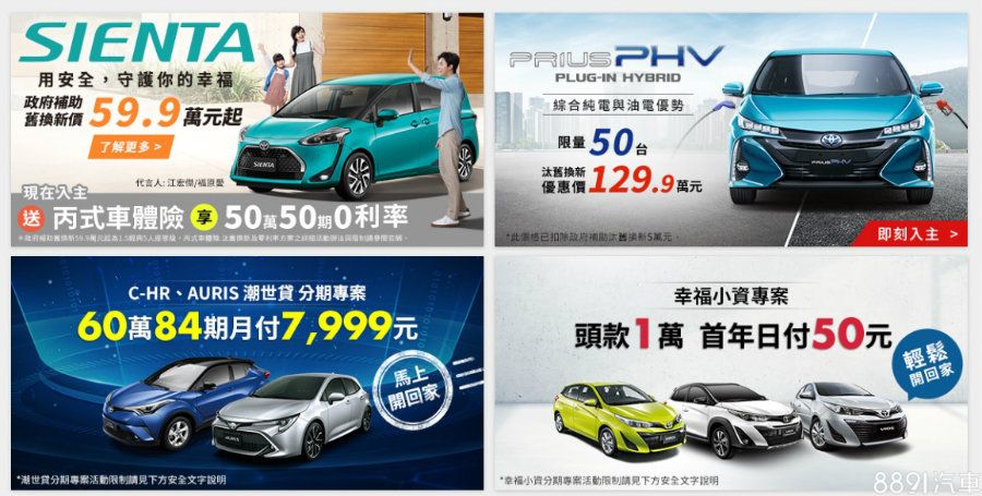 原廠針對旗下車款推出多項分期零/低利率優惠,入主Sienta還送丙式車體險。
