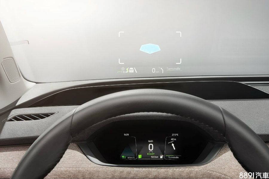 5.3吋數位儀錶有四種顯示模式,Enyaq iV也是首款搭載具擴增實境功能的抬頭顯示幕的Skoda。