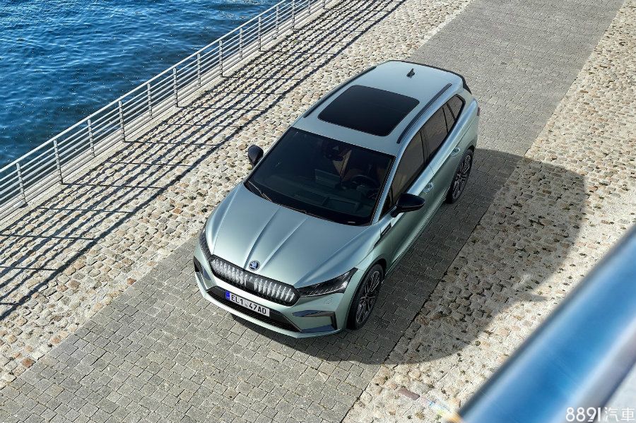Enyaq iV車身尺碼介於Karoq和Kodiaq之間,軸距為2765mm,身型趨於圓潤,車身下緣運用大面積防刮材質,家族化水箱護罩少不了,頗具侵略性的前保桿,則是加入了Vision iV Concept上可見之元素,車身多處亦採用品牌常見的水晶元素。