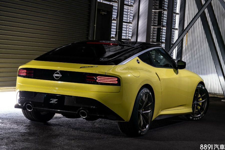 黑色車頂、車頂與窗沿連接處採用金屬飾條,以及後輪拱上方的Z徽飾,都讓Z Proto Concept增添不少時尚都會感,整合於橫貫尾門亮黑飾件中的LED尾燈組,設計取材自300ZX,辨識度頗高,19吋鋁圈和前六活塞黃色煞車卡鉗有效為氣勢加分,原廠並表示,在前後下擾流、側裙等處運用了碳纖維材質打造。