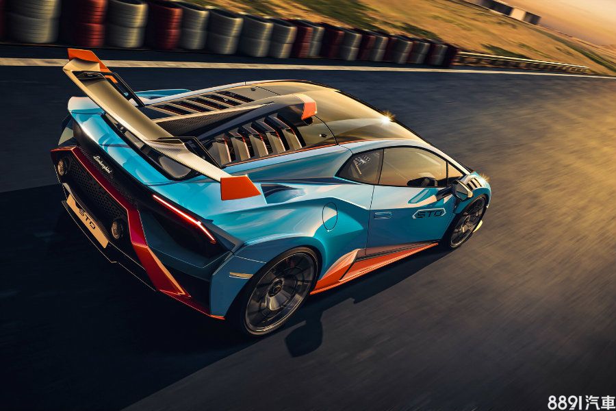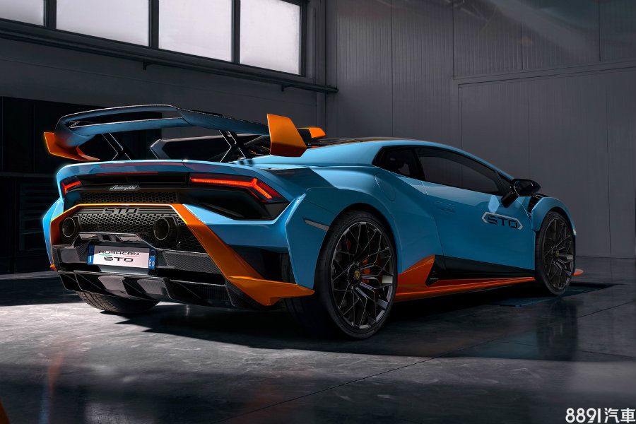 原廠並宣稱Huracan STO的造型設計,其空力效益較Performante精進了37%,車輛下壓力也隨之增加53%,在280km/h下能帶來450kg。同時,做為輕量化工程的一環,STO全車75%外觀鈑件採碳纖維製作,而鎂合金製作的鋁圈也比Performante的款式輕了20%。