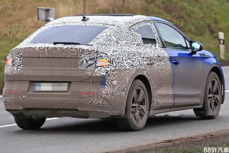 這輛在國外被捕獲的Skoda偽裝路試車,車頭與甫於今年9月發表的電動休旅Enyaq iV如出一轍,不過包含車頂自B柱以後向下傾斜的幅度,以及尾門衍伸出的小型擾流翼等設計,推測應為「Enyaq iV Coupe版」。