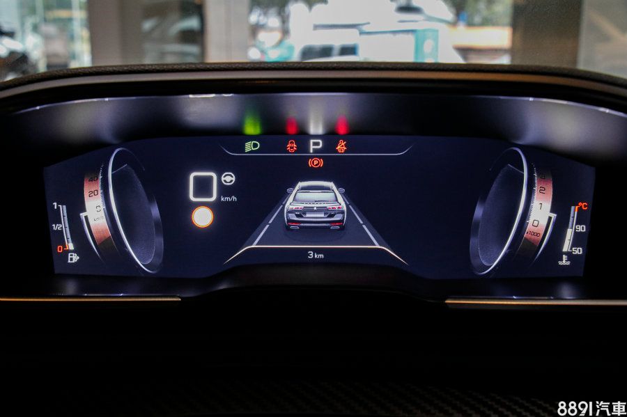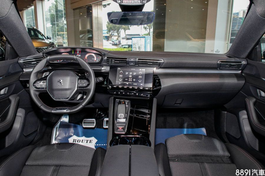 內裝採用第2代i-Cockpit座艙架構,架高的儀錶台及小盤徑方向盤為特點之一。座艙採黑色皮革搭配銀黑布面及古銅色車縫線鋪陳,並利用黑色鋼琴烤漆飾板及類碳纖維紋路飾板點綴其中,質感不俗。