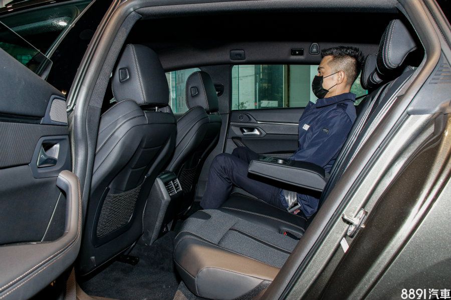 後座以177cm乘客示範,膝部空間充足,頭部也留有餘裕,但由於車窗線條下修的關係,兩側視野及開闊程度略受影響。前方中央設有後座出風口及2組USB充電孔可使用,中央扶手內則另設置杯架。